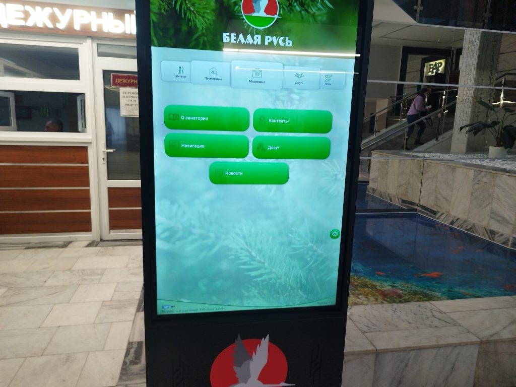Первое, что замечаешь, переступая порог санатория «Белая Русь», это элегантный интерактивный киоск прямо в фойе. Высокая стойка с большим сенсорным экраном теперь встречает каждого гостя наравне с улыбкой администратора. Казалось бы, просто техническая новинка, но за этим стоит нечто большее.