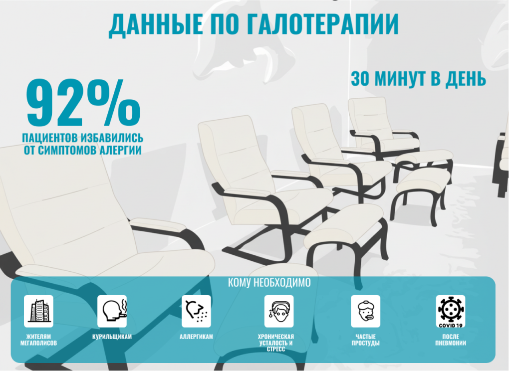 Самое интересное начинается тогда, когда вы перестаете что-либо делать и просто дышите. Специальный аппарат, галогенератор, насыщает это белое безмолвие микроскопическими частицами сухого солевого аэрозоля. Эти частицы настолько малы, что проникают туда, куда не достанет ни один сироп от кашля, в самые дальние уголки бронхов.