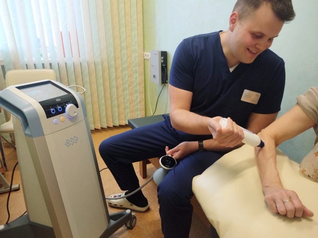 Процедура ударно-волновой терапиии в санатории «Сосны» для отдыхающих всегда становится событием, которое и звучит, и ощущается по-особенному. Променад между могучими соснами, вдыхая смолистый аромат, вдруг сменяется кабинетом, где акустическая волна даёт новый импульс для уставших суставов.