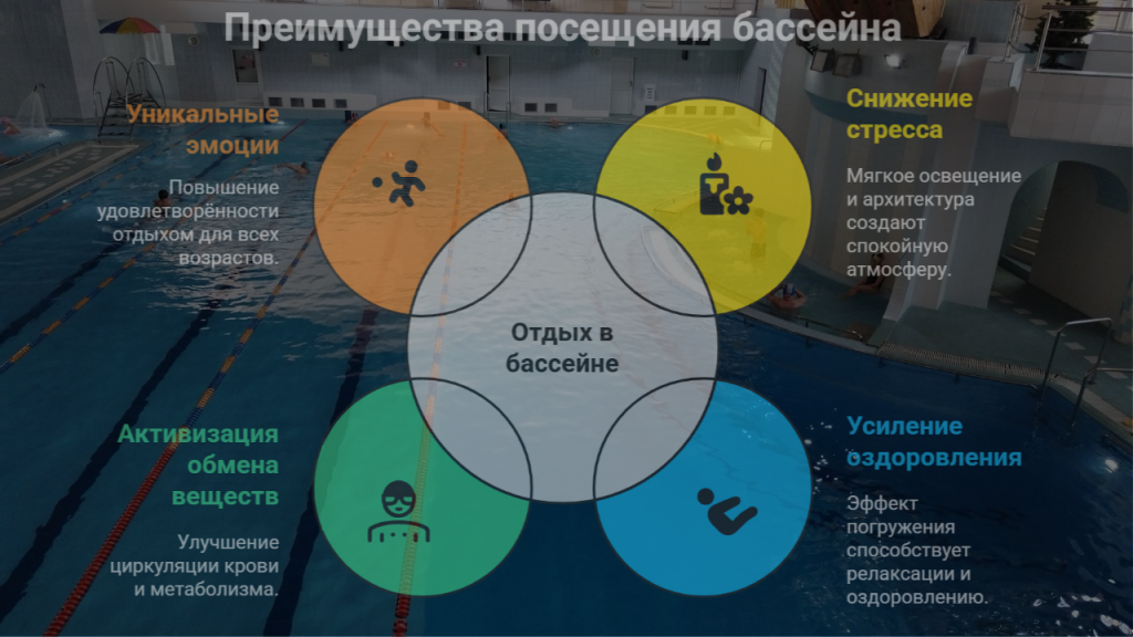 Многие говорят, что подобная атмосфера воздействует не только на эмоции, но и на организм. Исследования подтверждают: оригинальные формы бассейна и гармоничная архитектура действительно способствуют максимальной расслабленности, а грамотное освещение снижает тревожность, улучшает настроение, стимулирует циркуляцию крови.