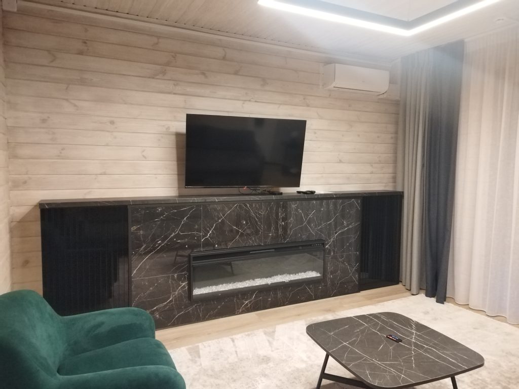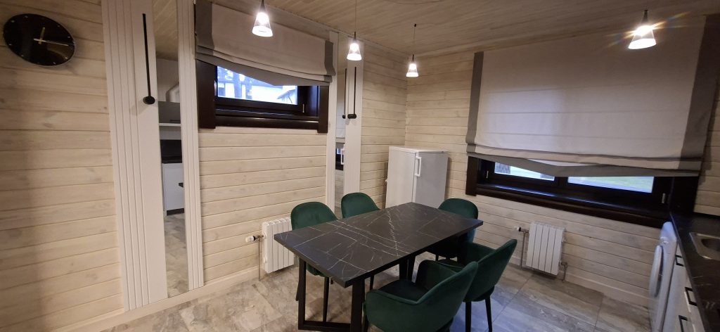 Коттеджи Белой Руси стоят среди сосен всего в нескольких сотнях метров от озера рядом оборудованный пляж и тишина которая по вечерам звучит громче телевизора. Внутри дом напоминает современную городскую квартиру. Мягкие диваны, электрический камин, большие окна, запах свежего дерева и текстиля считывается почти физически.