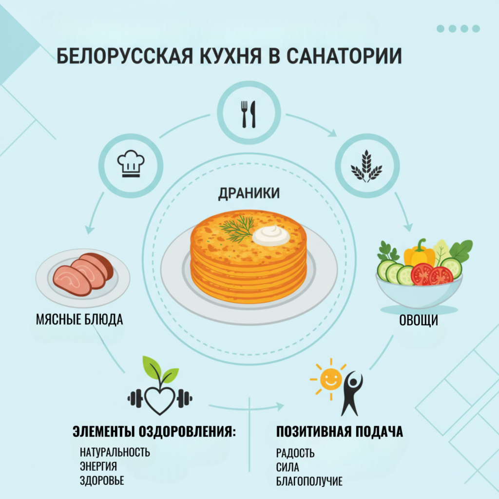Диетологи санатория не ломают традиции через колено, а мягко адаптируют их. Оладьи готовят на современном оборудовании, которое позволяет использовать меньше масла. Копчёности подаются небольшими порциями рядом со свежими овощами. Молочная затирка и супы с добавлением печени дают организму белок без лишней нагрузки на пищеварение. Получается, что отдых в санатории Беларуси становится не отказом от любимых вкусов, а их осмысленным возвращением.