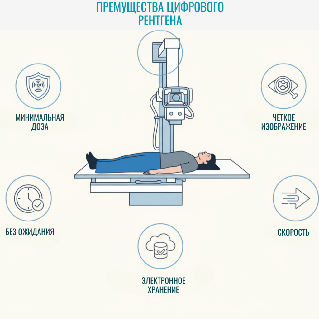 Когда болит грудная клетка или трудно вдохнуть, гораздо опаснее остаться без точного ответа, чем получить снимок на современном аппарате с контролируемой минимальной дозой.