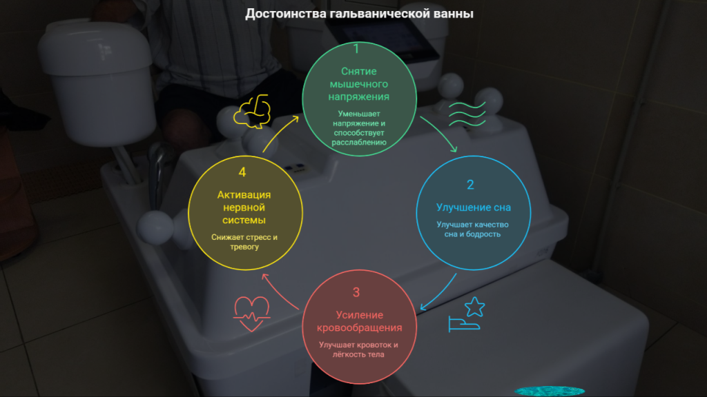 И вот он, тот самый момент, когда ты не просто отдыхаешь — реально подзаряжаешь себя, как аккумулятор! Четырехкамерная гальваническая ванна в «Спутнике» является станцией по выдаче свежих сил, лёгкости и спокойствия. Вы сидите в центре этой футуристической машины, а ваши руки и ноги погружаются в тёплую воду, где электропотоки плавно разгоняют всю накопившуюся усталость. Вдох — и на выдохе уходит напряжение, будто его смывают ручьи после летнего ливня. Аромат чистоты, мягкий плеск воды, ощущение лёгкой вибрации на коже — и мир словно становится более ярким.